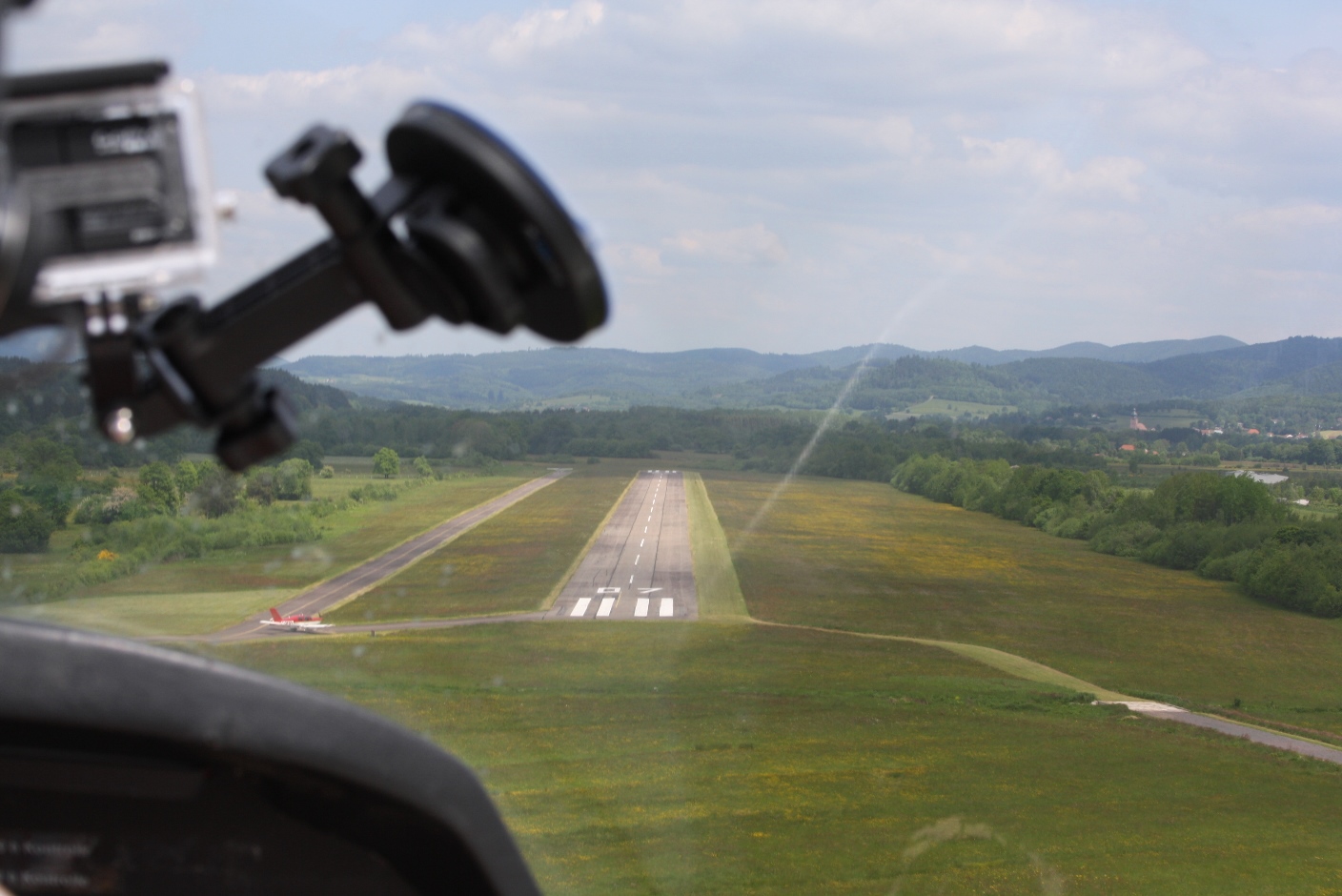 Die Wolken ließen uns schon ab und an einen kleinen Blick auf blauen Himmel erhaschen und es ging wieder Richtung Deutschland, den Rhein entlang, über den Kaiserstuhl bis zu unserem ersten Stop, dem im Stadtgebiet gelegenen Flughafen Freiburg. Der Wind stand cross auf der Bahn, was eine, insbesondere für die Flugschüler, lehrreiche Landung zur Folge hatte.