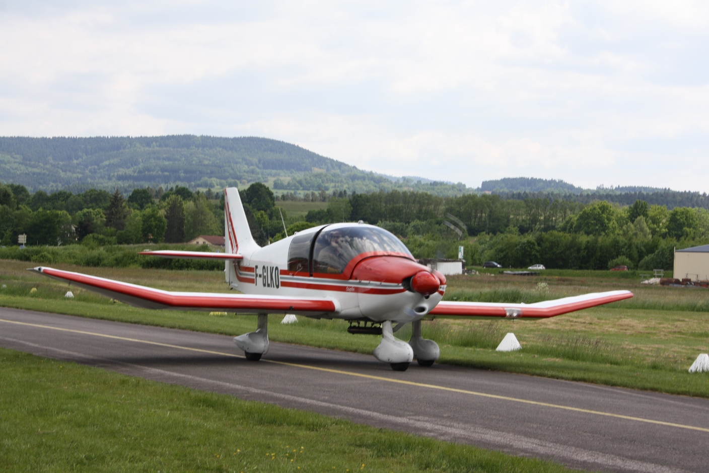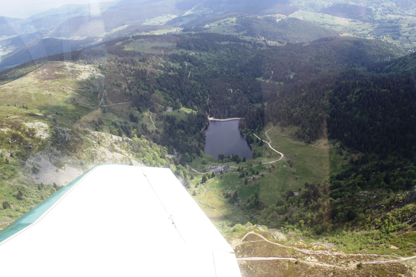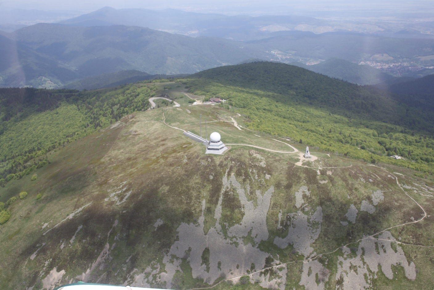 Wir bestaunten den Grand Ballon, den höchsten Gipfel der Vogesen (1.424m), und flogen die Route des Crètes entlang. Dabei zogen wir ungefähr dreihundertzweiundsiebzig Vollkreise, um uns Sehenswürdigkeiten wie z.B. den rekonstruierten Tempel auf dem Donon und andere interessante Plätze genauer anzusehen. Vierzig Minuten nach dem Start kam dann auch der Flugplatz St. Dié in Sicht.