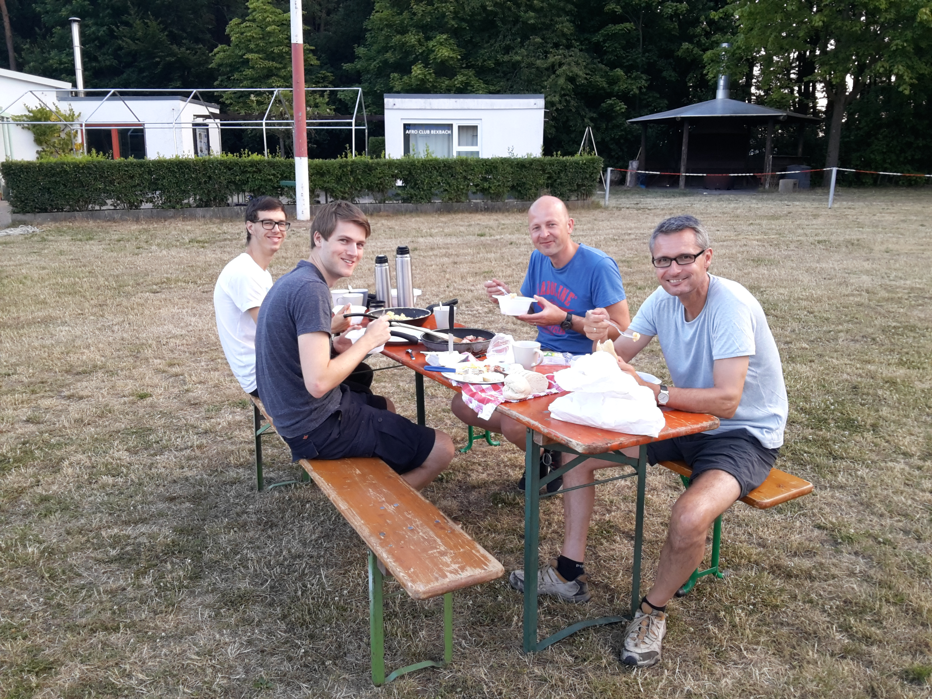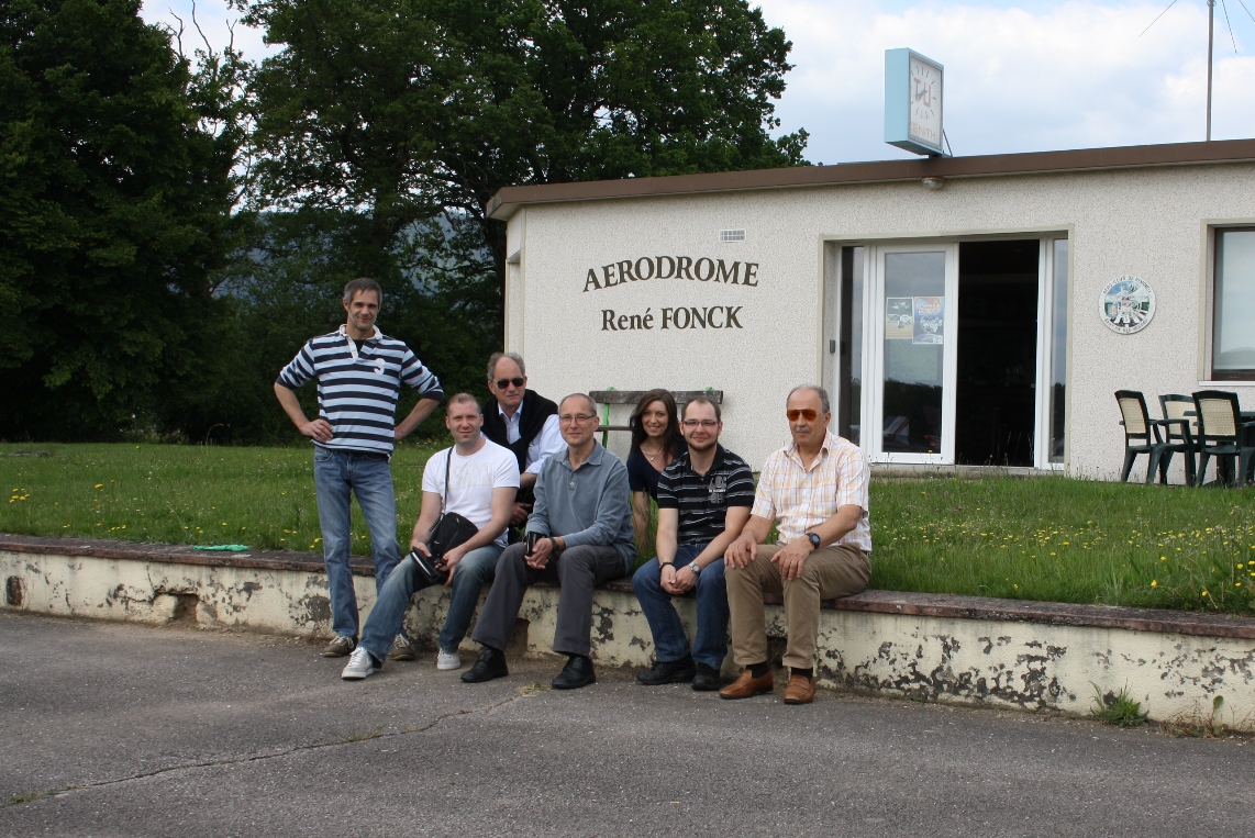 Nach kleinen Verständigungsschwierigkeiten fanden wir schließlich einen Englisch sprechenden Piloten, der uns Getränke anbot und zu unserer Freude verkündete, dass wir keine Landegebühr zahlen müssen. Wir machten es uns in der Sonne gemütlich und das verpatzte Frühstück in Bexbach konnte jetzt dank mitgebrachter Hefezöpfe nachgeholt werden. Nach dem obligatorischen Gruppenfoto ging’s zurück Richtung Heimat. Tschüss St. Dié – bis zum nächsten Mal!